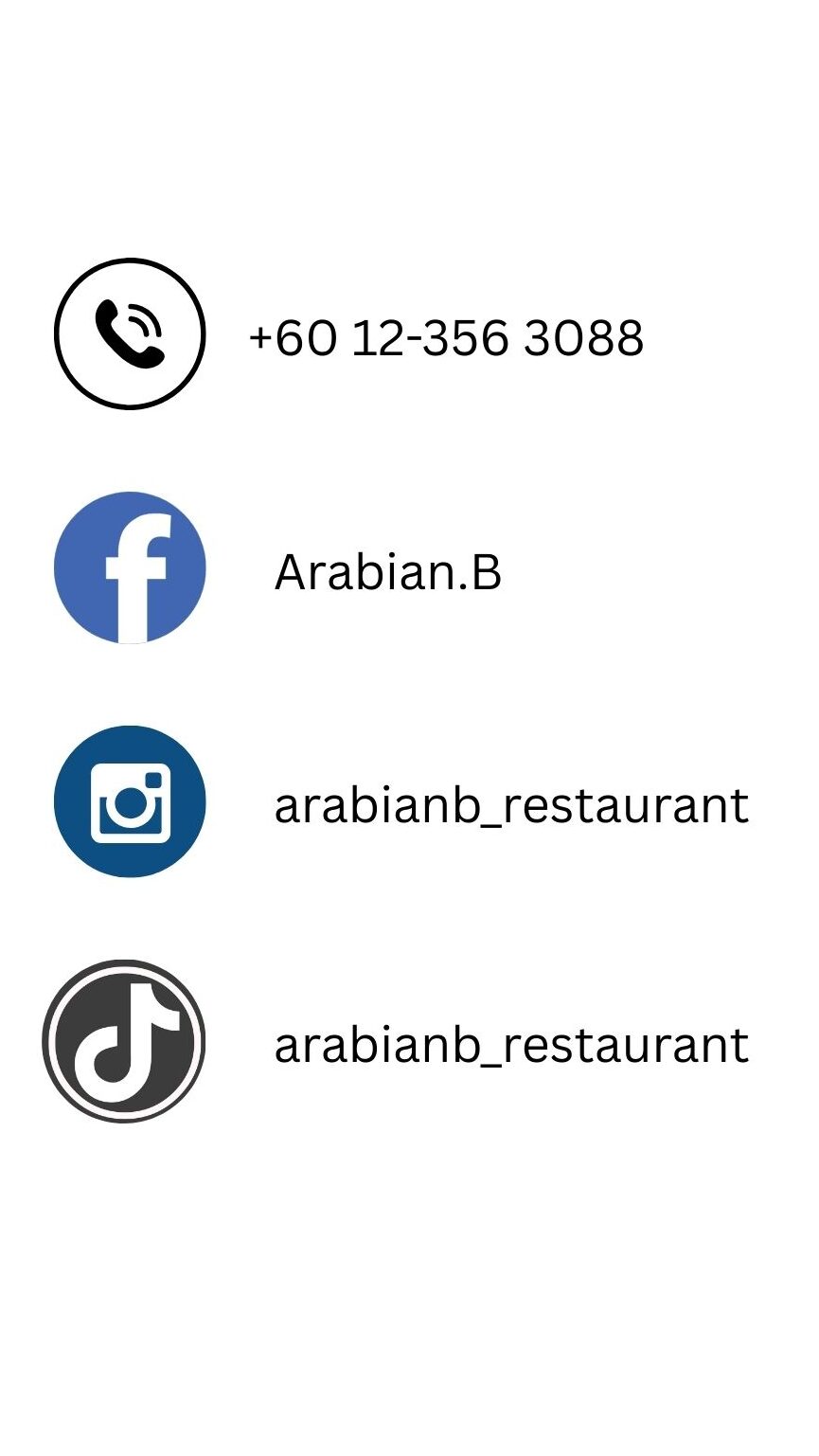 Book Your Table or Inquire About Our Menu! Our team at Arabian.B is ready to create an unforgettable dining experience in Kuala Lumpur. Reach out today for reservations, event bookings, and menu inquiries.